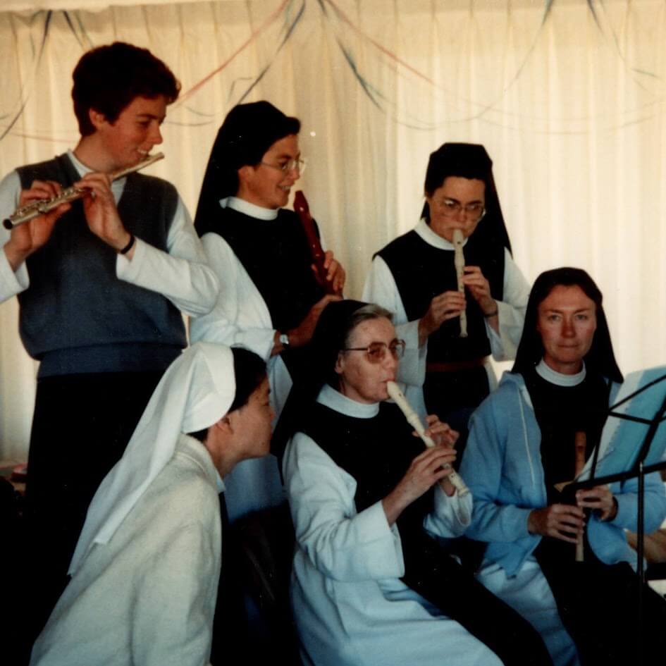 it would be to say that she was a woman possessed of a great sense of faith and a great sense of humor. She was born in Valley Falls, RI in 1927 and lived just a few blocks from the, then, monastery of Trappist monks of Our Lady of the Valley in Pawtucket, RI, now moved to Spencer. Her vocation to the Cistercian life was nourished by the Sunday Vespers she used to attend there when she was 20. When she heard of the arrival of Irish sisters from Glencairn at Wrentham, MA she applied to enter there and was received in 1950 as a lay sister. She was among the first to enter Wrentham. Clare worked in the barn milking cows and mucking out stalls with other sisters. This was a supreme test of her vocation. She detested working with cows!! She used to tell us that when she died, if she saw a cow, she KNEW she didn’t make it to heaven! She also served as cook, worked in making vestments and … being the portress, a job that stayed with her for the remainder of her monastic life.