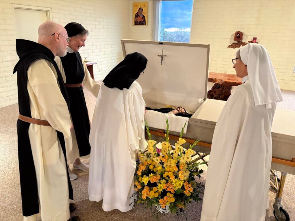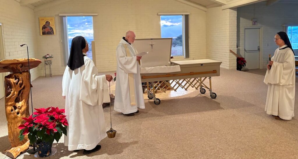 On Christmas Eve, Clare contracted bronchitis. Her 98 year old body could no longer fight off encroaching illnesses and on January 1, she went peacefully into the arms of God the Father. Clare promised us that when she died, she wasn’t going anywhere. She would be here at the abbey. I believe that! She will be where her heart is: with God, with us and all who love her and whom she loved. Clare, pray for us.